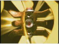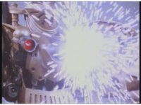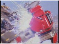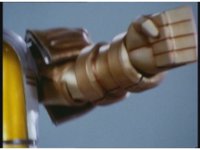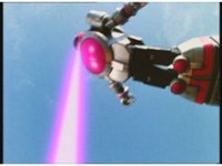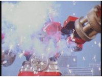 Close, side angle, on Red Battlezord's fists pistoning in and out while unleashing golden laser bolts from its gauntlets. |