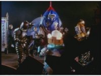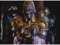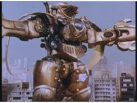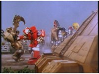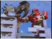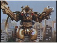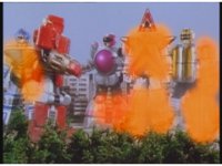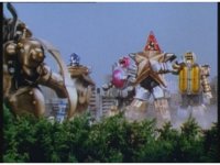 Midas Monster fires golden beams upon Pyramidas, but they fail to harm the already golden machine. Red Battlezord then rushes in and exchanges blows with Midas. |