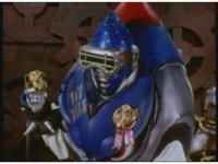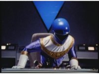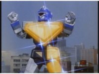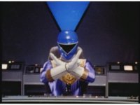 Rocky calls for Zeo Ranger 3, Blue, as said color energy flashes about, a green grid overlaying on his body. The rising energy covers him completely, becoming the Blue Zeo Ranger, visor and costume circuits shimmering with power. |