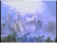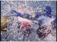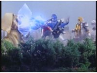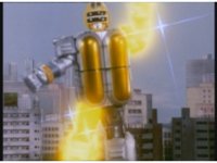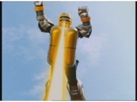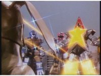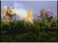 Super Zeozord Three strikes again, and again the shield spark bursts it, before Midas Hound then fires golden eyebeams at it. |