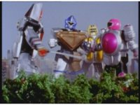 Reacting to the monster, zoom in on Super Zeozord Five. |