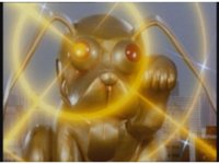 Midas Monster raises arms, then drops them, firing golden beams from collar eyes. |