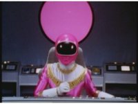 Kat calls for Zeo Ranger 1, Pink, as said color energy flashes about, a green grid overlaying on her body. Briefly, we cut to an outstretched arm morphing into a gloved Zeo Ranger hand. Cut back to Kat, as the rising energy covers her completely, becoming the Pink Zeo Ranger, visor and costume circuits shimmering with power. |