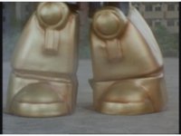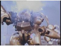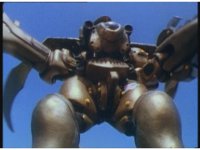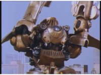 Pan close down on Super Zeozord Two, left arm and left boot made of gold. |