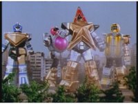 Zoom out as all four Super Zeozords stand, struggling with their useless golden bits. |