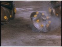 Six split shot of all six Rangers in their respective cockpits, motioning arms forth, then grabbing controls. |