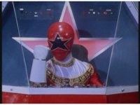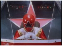 In his Super Zeozord cockpit, Red nod-talks to our very slight right. |