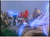 Zeo Megazord walks in and begins sparkily slashing away all the electrified chains off the other Zords. |