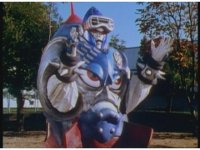 Track around to the left, as Zeozord Five passes over Zeozords One & Two, causing their Battle Helmets to slide forth off of their now-stationary forms. |