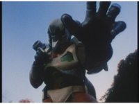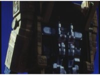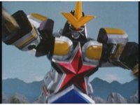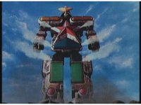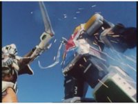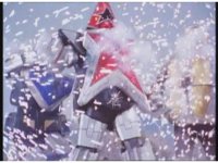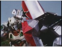 Push in, upward angle, on Zeo Ultrazord, as it lowers its arms in triumph. |