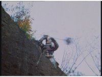 On edge of cliff, Klank whips Orbus around and throws him away. |