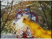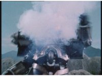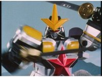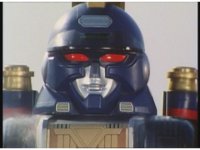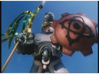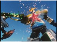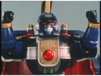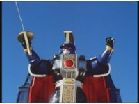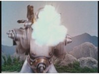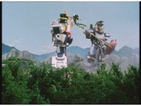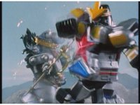 As Nuklifier doubles over, Warrior Wheel materializes, posing, in front of Super Zeo Megazord. Zoom in past him, onto SZM, turning head to our right. |