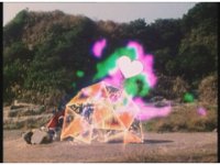 Zoom out as the four Rangers huddle around Pink, creating an energy shield that causes energy heart beam to bounce off. |