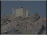 Upward angle on the Command Center exterior, showing much of the mountain below it. |