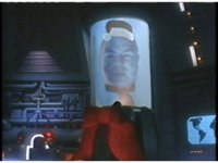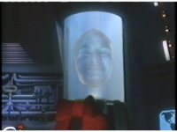 Close on King Mondo, partially near viewscreen, talking at us, holding left hand up for a bit during it. |