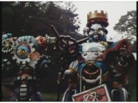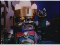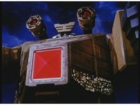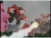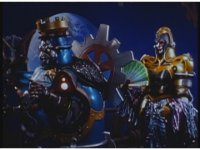 Zeo Megazord & Red Battlezord come together, with golden flashing, to form the Zeo MegaBattlezord. |