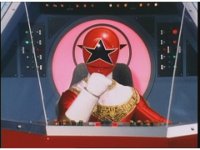 Zoom in on Red Battlezord cockpit, nod-talking intently while gripping controls off-frame. |