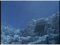 Pan down from the blue sky onto an upward angle on the Command Center exterior, the mountain beneath it dominating the shot. |