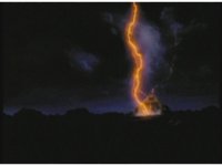Zoom out as Pyramidas releases blue beam skyward, leading to golden lightning bolts repeatedly striking the ground in front of it, creating a direct line of explosive destruction straight ahead of it at us. |