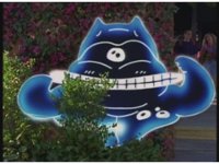 Prince Gasket turns around to face King Mondo, as shot pans up to him, he talks beside Earth cut-out. |
