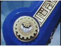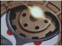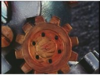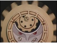 Close-up on Cog with opened faceplate, as a control cog slides into the gearworks, causing eye flashing. |