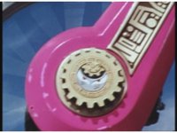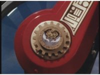 Close on control cog on Red's wheel, throbbing with reddish power. |