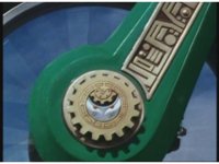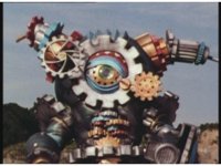 In the inner workings of the Megazord, a control cog materializes from energy, and begins spinning, causing all the gears and machinery to come to life around it. |