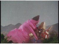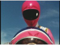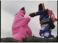 Zoom in on Megazord cockpit, Pink nod-talking, raising a thumb, then reaching down. |
