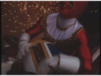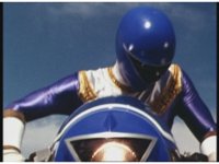 Zoom in on Red Ranger, as he rides on his Zeo Jet Cycle, talking to our slight left. |