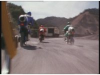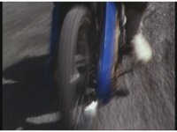 Ground level shot of the five Zeo Jet Cycles' wheels passing to our left along dirt road. |