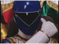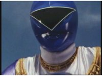Rocky calls for Zeo Ranger 3, Blue, as said color energy flashes about, a green grid overlaying on his body. The rising energy covers him completely, becoming the Blue Zeo Ranger, visor and costume circuits shimmering with power. |