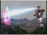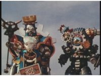 As Red Battlezord repeatedly punches Impursonator, Zeo Megazord is just getting up, when Cog-Changer walks over and fires an energy sphere into it. |