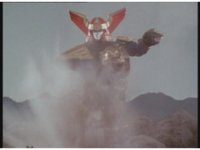 Ground level, as Red Battlezord's feet land, knocking up dust around them. |