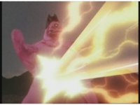 Impursonator absorbs the multitude of golden energy beams, her belly swells and glows, then she releases the energy as golden electricity. |
