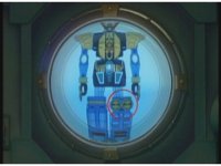 Schematics of Zeo Megazord slowly gain color as red indicator ring blinks over left knee. |