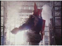 Zeo Megazord continues to sparkily bash apart the hangar scaffolding around it. |