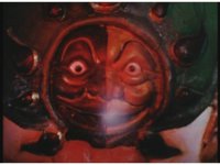 Extreme close-up of Mouthpiece's round little face, turning red and spewing steam. |