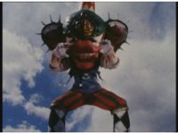 Upward track around and push in on Turbo Megazord, lowering sword triumphantly beneath the blue sky. |