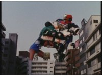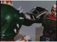 Red steps on brake, causing the wheels to lock up, and sending the combined five Turbozords up into a sudden standing position, the Rangers watching. |