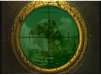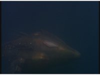 Subcraft slowly floats about, right side facing us, water reflecting upon its hull. |