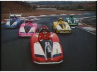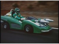 The five Rangers get out of their Turbo Carts and regroup together to our left, all looking upward. |