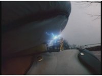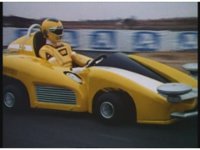 Turbo R.A.M. drives through rocky terrain, then pulls up to a stop on pavement. |