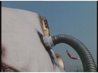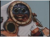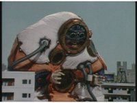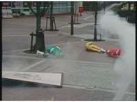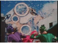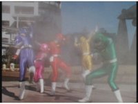 Porto pops open his porthole face-plate, spraying mist down upon the five Rangers, knocking them down. |