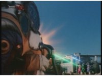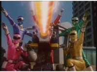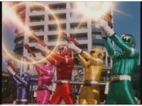 Zoom out from Red, as the five Rangers man their stations around Turbo RAM, firing a beam of golden power directly upward. |