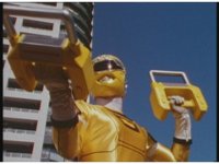 Yellow Ranger bashes electrically into Porto's leg with her Star Charges. |