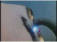 Porto turns around and lets the beam strike his buttcheek area, then turns forward again and scratches the impact spot. |