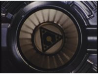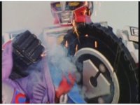 This same shot of the Megazord cockpit quickly tracks left repeatedly to imply motion a few times. |