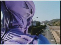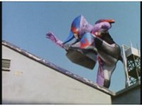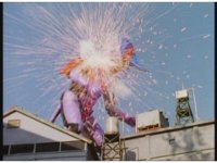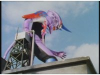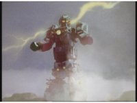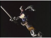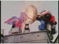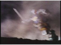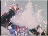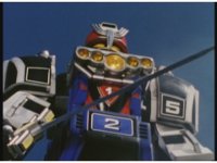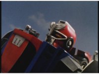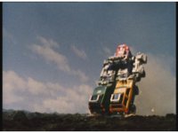 Upward track around and push in on Turbo Megazord, lowering sword triumphantly beneath the blue sky. |
