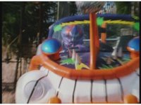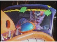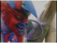 Green finally catches up, which annoys Demon Racer, and as soon as Green pulls ahead, the monster fires energy bolts from his horns, causing spark bursts around Green, causing him to lose control of his Turbo Cart and spin around to a stop as Demon Racer passes by. |