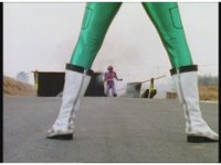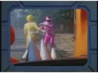 Kat morphs into Pink Turbo Ranger via the power of Wind Chaser. |